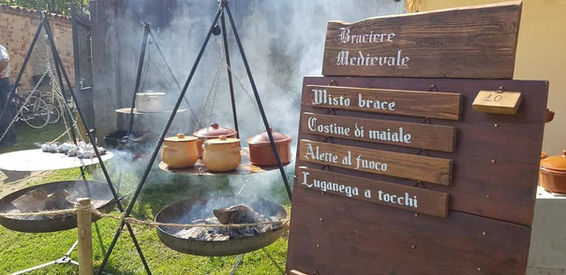 In loco, grazioso e ospitale, ove ciascun viandante possa trovare ristoro, sedere a desco in lieta compagnia, levar calici in gaudio con amici e vivere la rievocazione non solo con gli occhi e col core, ma pure per mezzo di vivande e sapori che allietano l’animo e rinfrancano lo spirito.